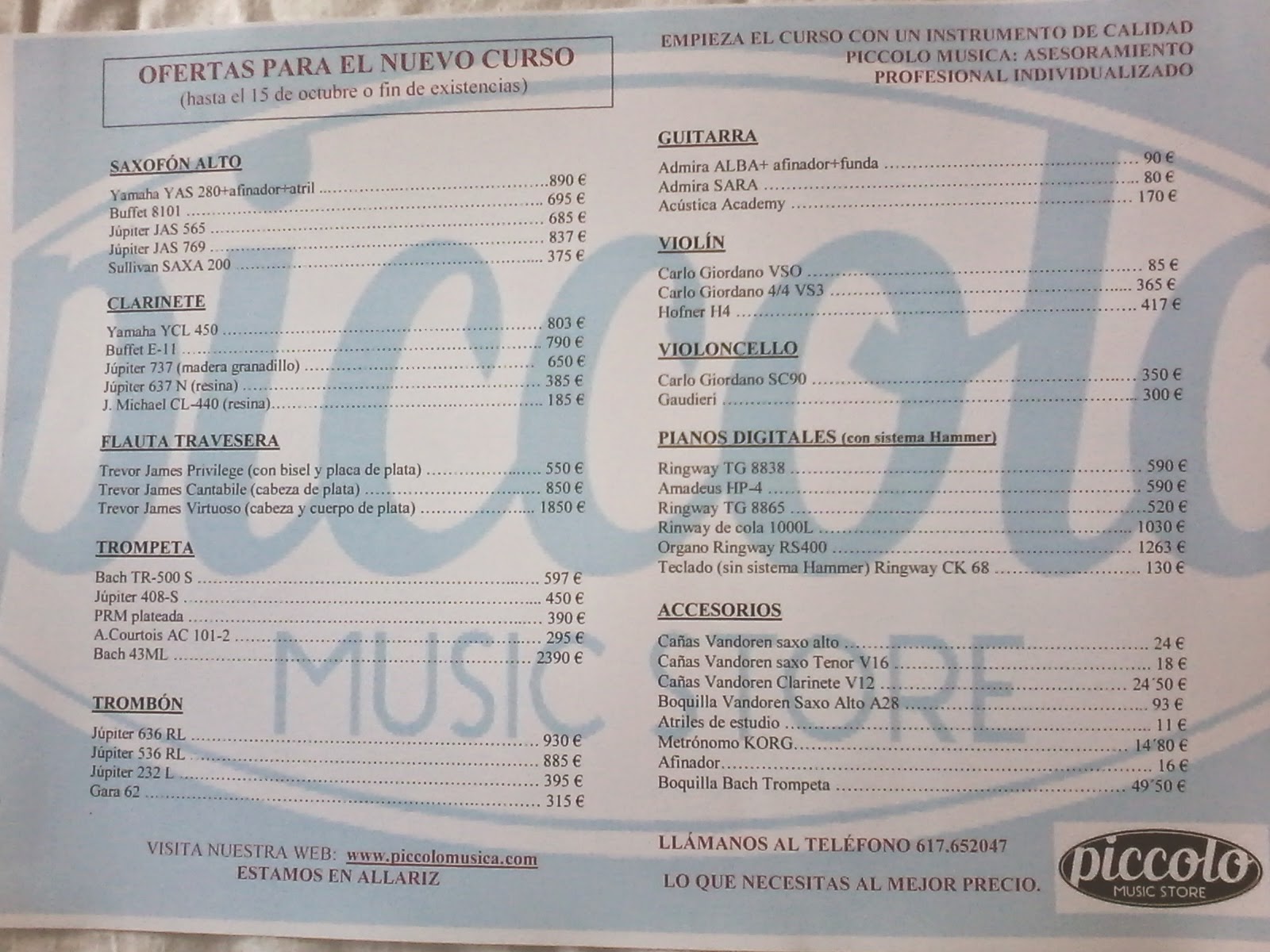 OFERTAS PICCOLO MUSICA PARA EL NUEVO CURSO EN INSTRUMENTOS MUSICALES